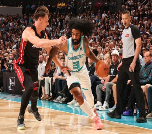 上半场热火一度领先7分,可在第三节黄蜂一波流反超还领先8分,失去了阿德巴约的热火并没有放弃,进入第四节还剩28秒小海梅-哈克斯两罚全中后热火领先4分,米勒抢三分,怀特再抢三分双方打平,进入最后10.8秒,只可惜希罗三分绝杀不中进入加时赛。