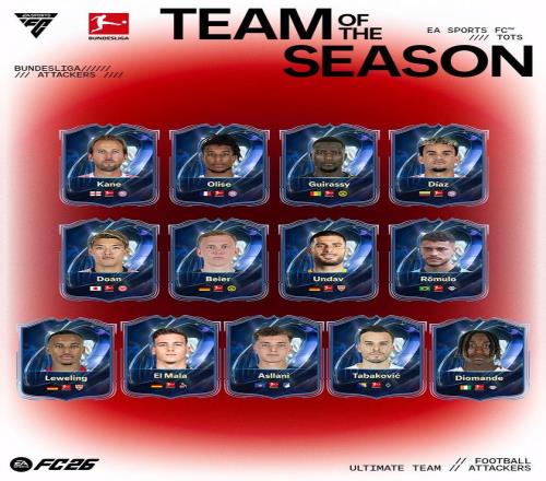 北京时间4月15日,EA SPORTS官方公布了FC26德甲赛季最佳阵容的提名球员,哈里-凯恩、奥利塞领衔,拜仁慕尼黑9人入围,多特蒙德6人,法兰克福的日本前锋堂安律在列。