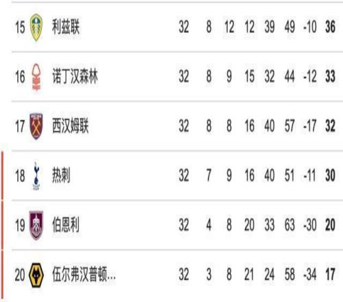 热刺就惨了,本轮新帅德泽尔比首秀输给桑德兰,欧联冠军继续待在降级区,被利兹联拉开了6分——倒数第3轮双方还有一场直接交手。也不知道曼联是真的休息太久状态掉档,还是顺水推舟送热刺一程,报去年欧联决赛之仇。有意思的是,热刺和西汉姆都是卡里克的前东家,如今都水深火热。