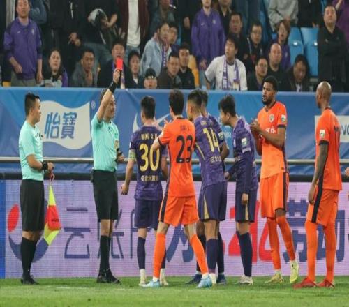 第81分钟,黄嘉辉两黄变一红被罚下场,津门虎10打11。补时第11分钟,青岛队获得全场最后一个角球机会,津门虎后卫杨帆打入乌龙球,最终两队1比1战平。