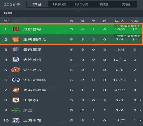 争冠有戏!川渝双雄轮流登顶积分榜:成都进球数等于4队之和